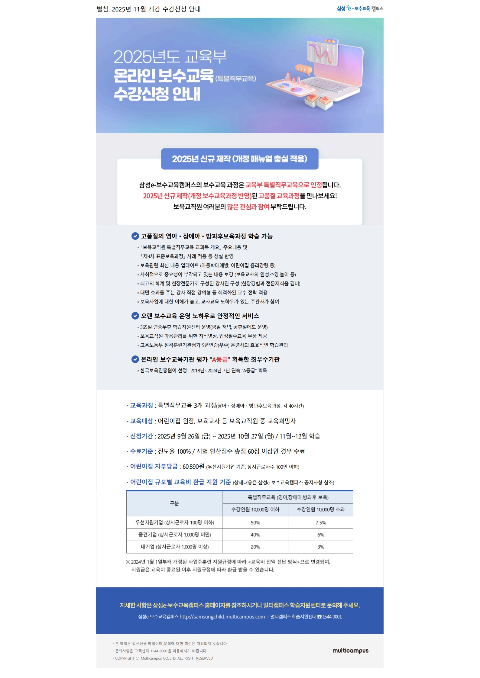 [삼성e보수교육캠퍼스] 25년 11월개강 온라인 특별직무교육 수강신청 안내