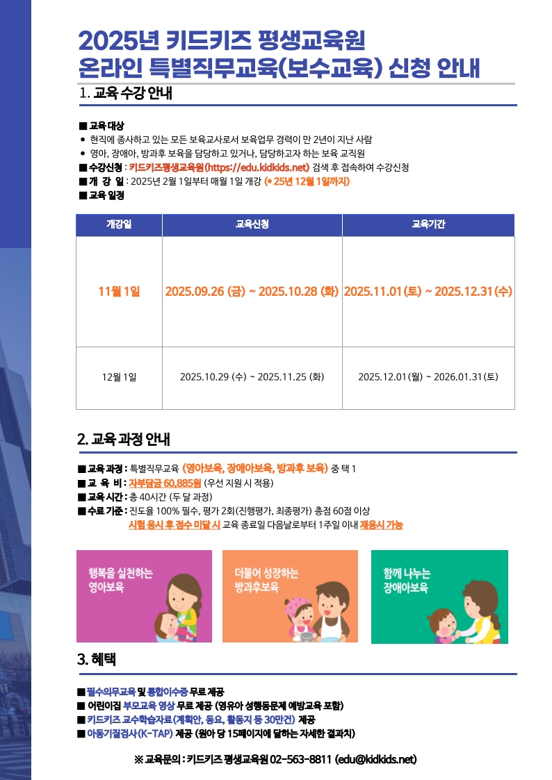 [EK 키드키즈 평생교육원] 보육교직원 온라인 특별직무교육 2025년 11월 개강반 안내