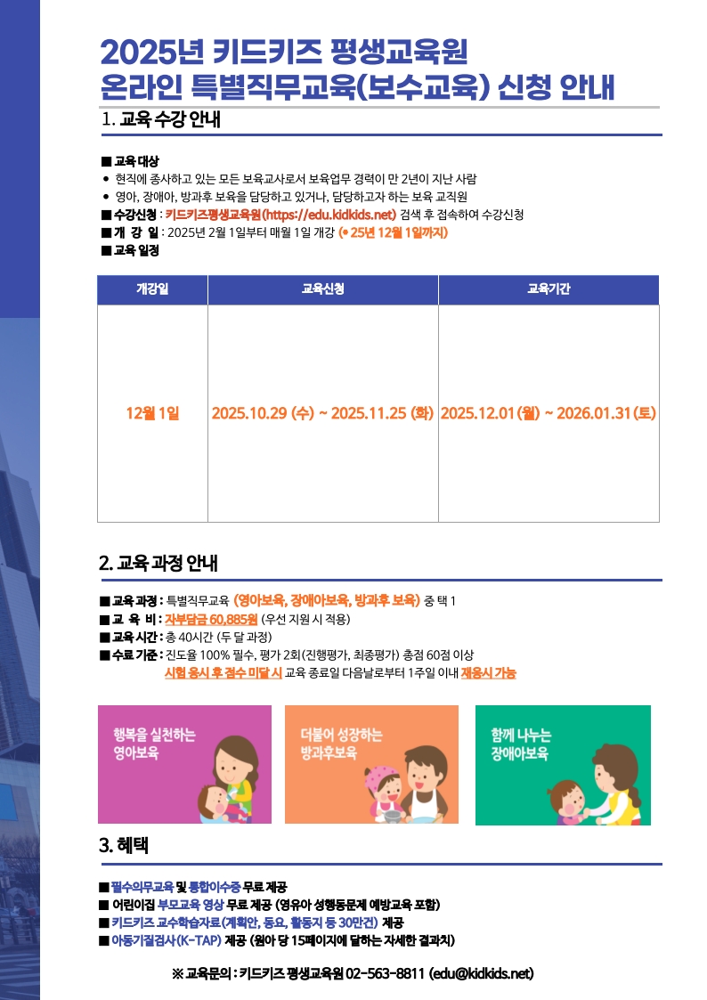 [EK 키드키즈 평생교육원] 보육교직원 온라인 특별직무교육 2025년 12월 개강반 안내