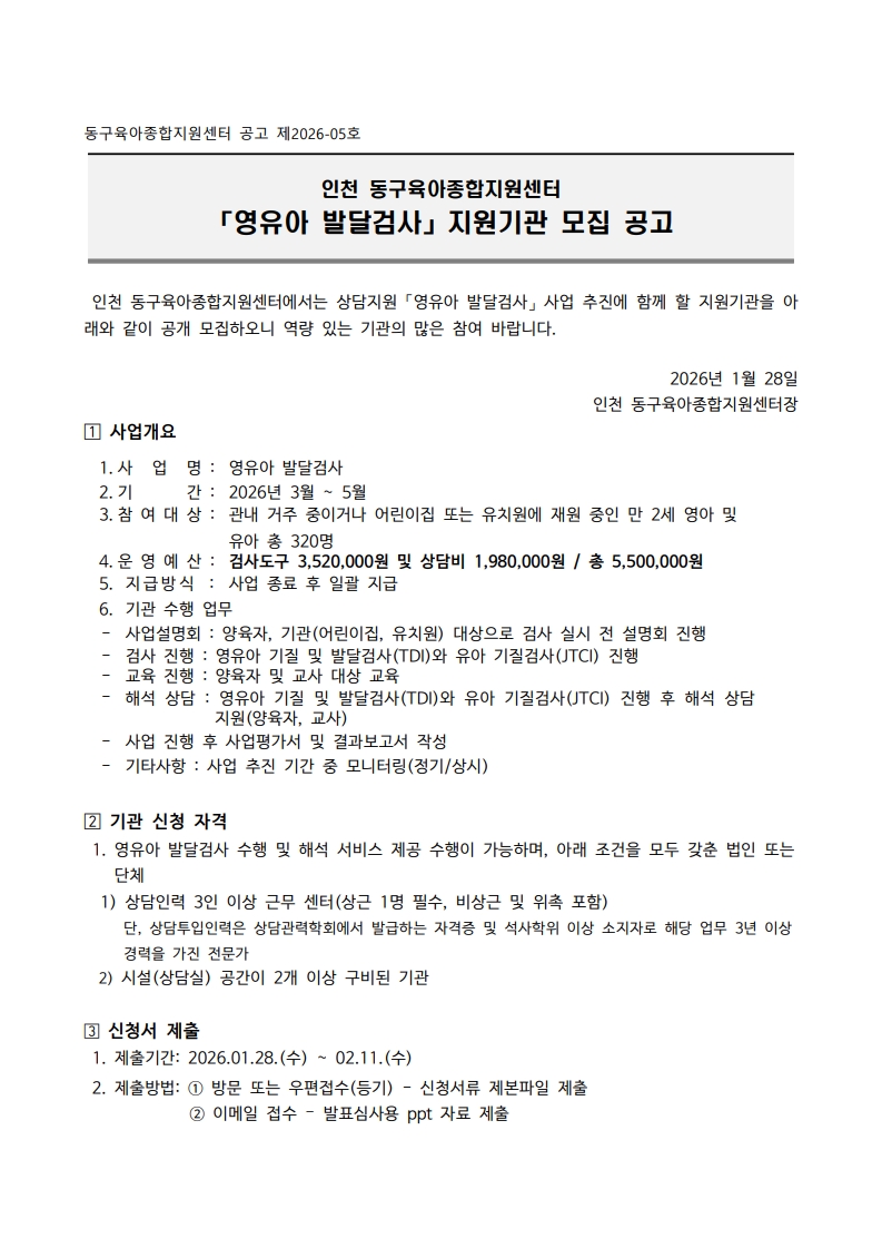 [동구센터] 영유아 발달검사 기관 모집 공고