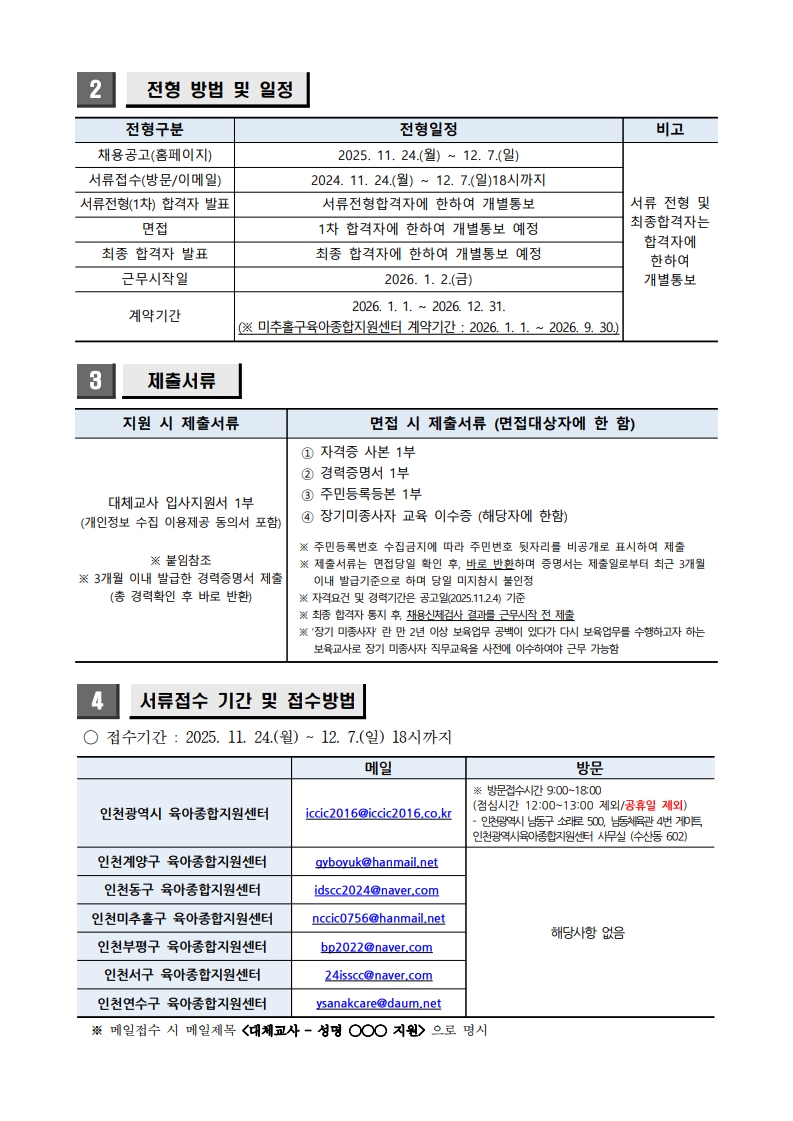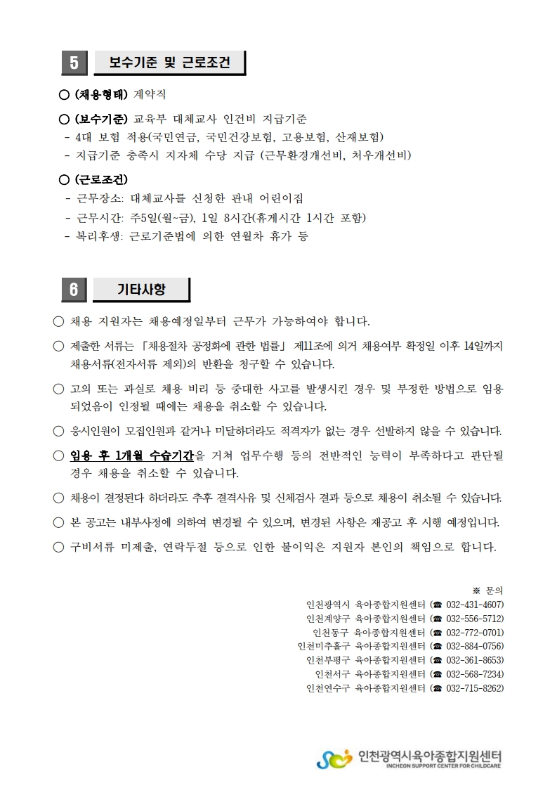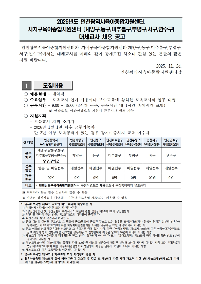 [인천계양구육아종합지원센터] 「2026년도 대체교사지원사업」 대체교사 인력채용 게시