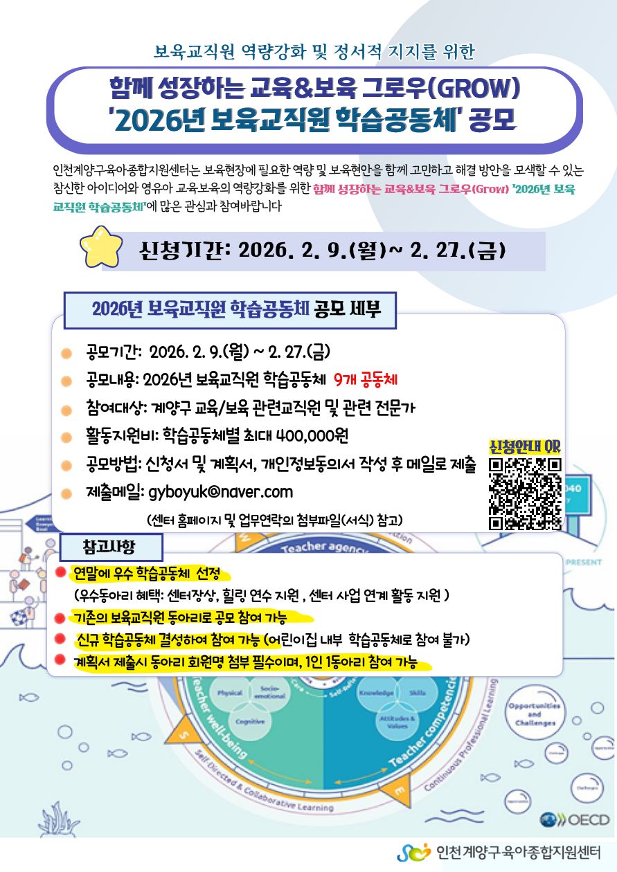 함께 성장하는 교육&보육 그로우(GROW)) 2026년 보육교직원 학습공동체' 공모 안내