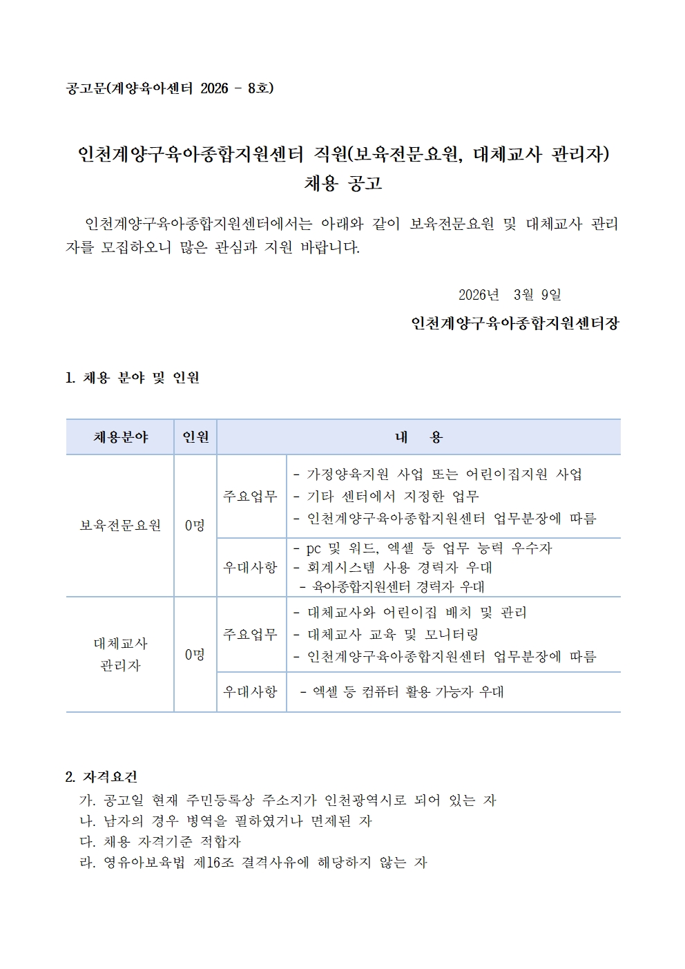 인천계양구육아종합지원센터 직원(보육전문요원, 대체교사 관리자) 채용 공고문.pdf