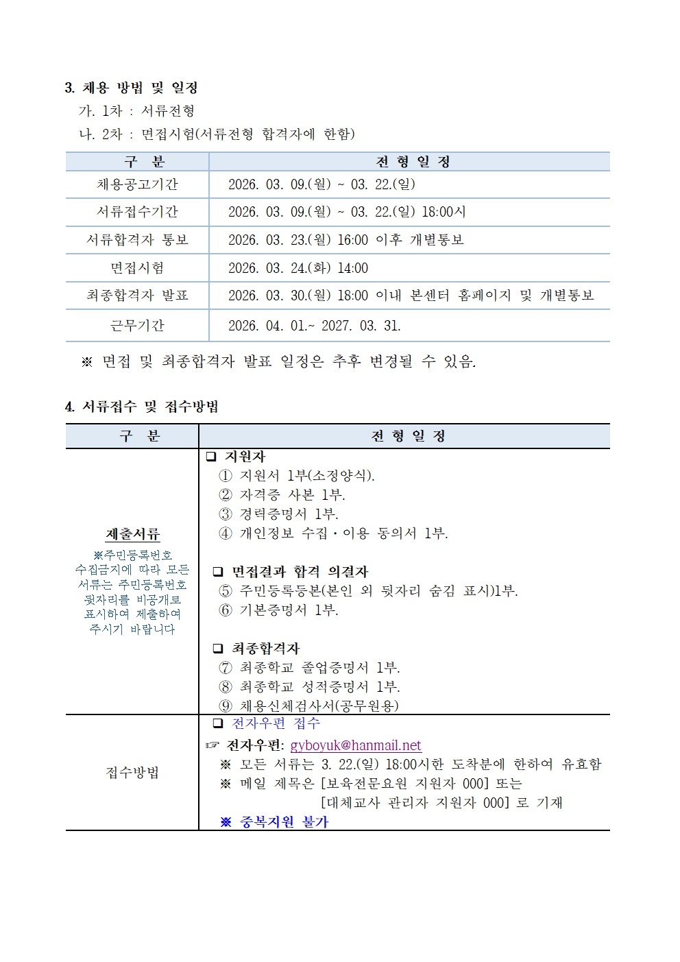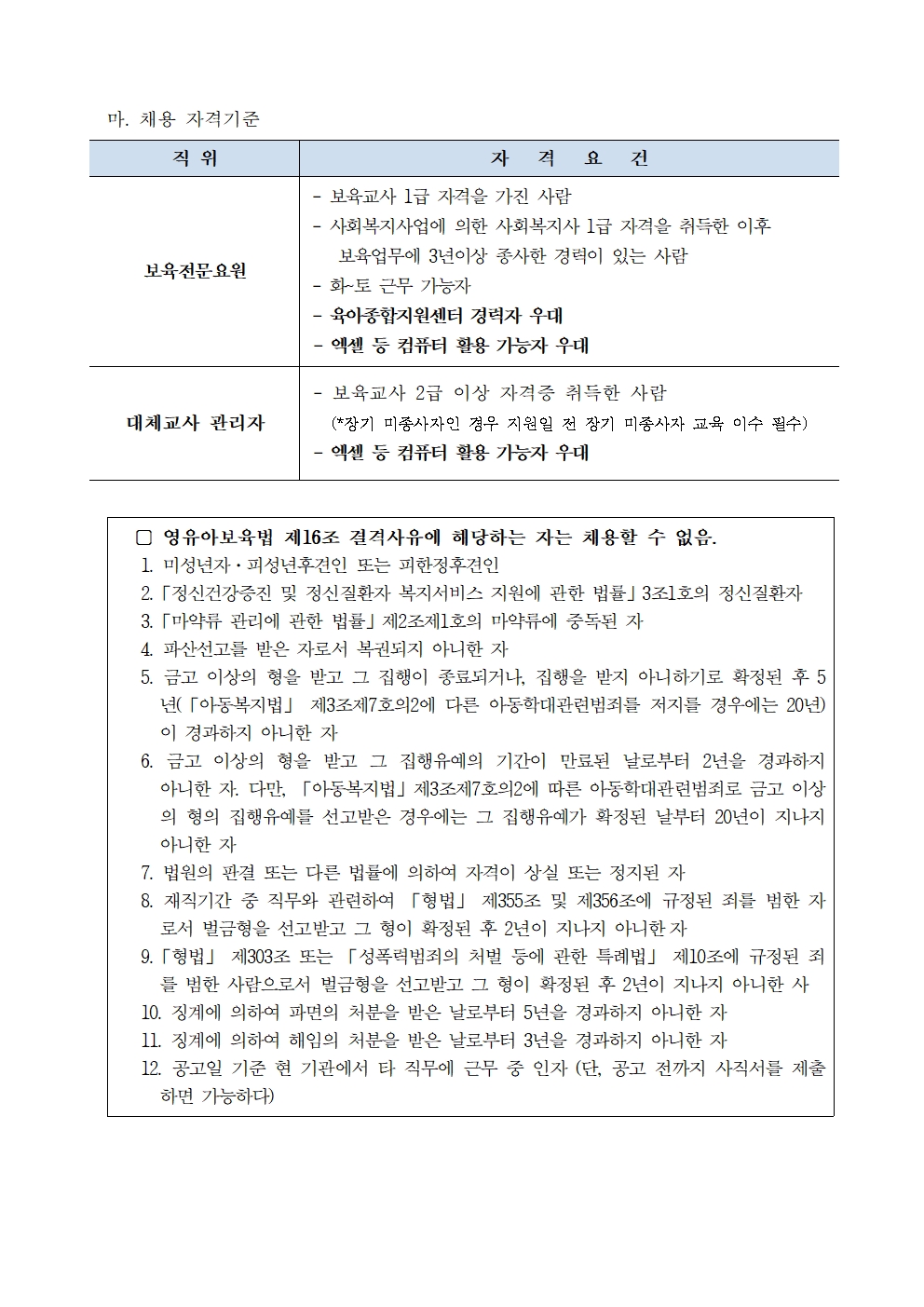 (본센터) 직원(보육전문요원, 대체교사 관리자) 채용 공고