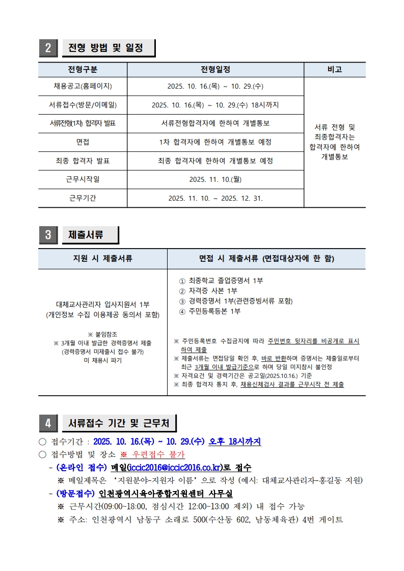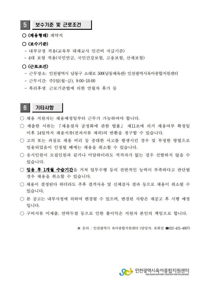 [인천광역시육아종합지원센터] 인천광역시육아종합지원센터 대체교사관리자(장애인) 채용 공고
