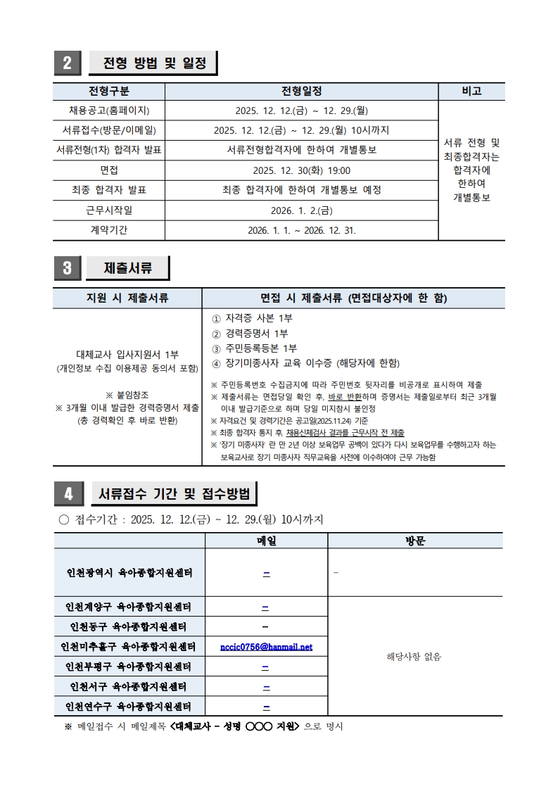 미추홀구육아종합지원센터 대체교사 채용공고