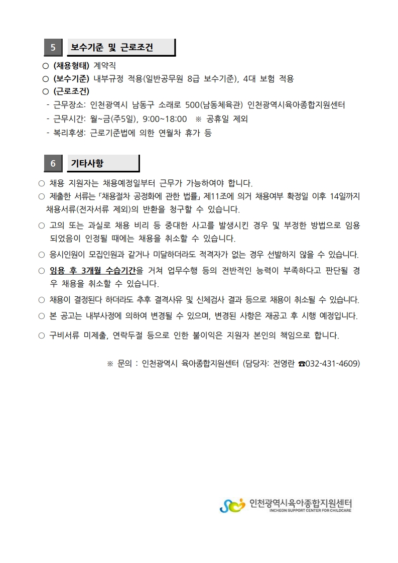 [인천광역시육아종합지원센터] 직원(상담전문요원) 채용
