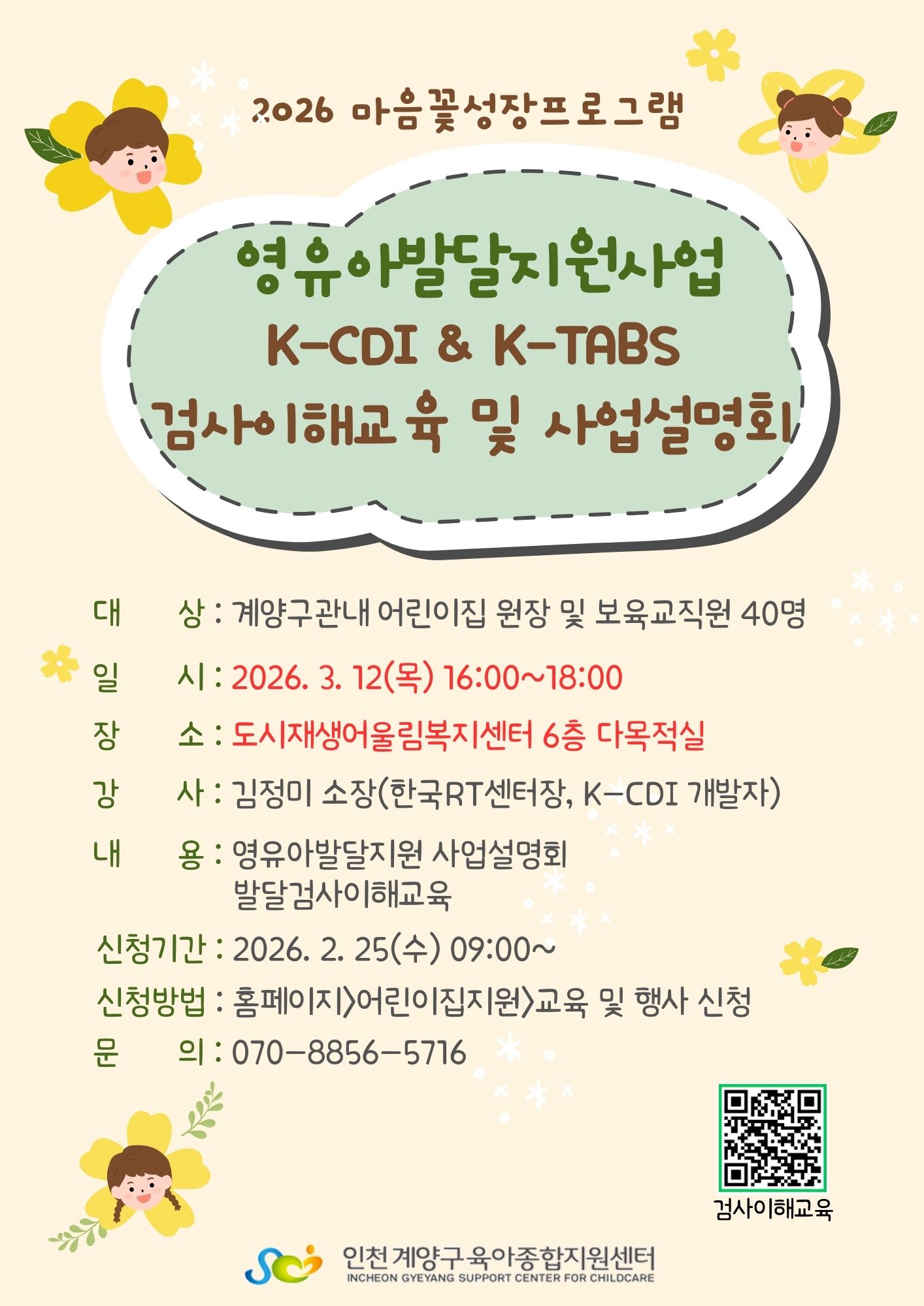 2026 마음꽃성장프로그래 영유아발달지원사업 「K-CDI & K-TABS」검사이해교육 및 설명회