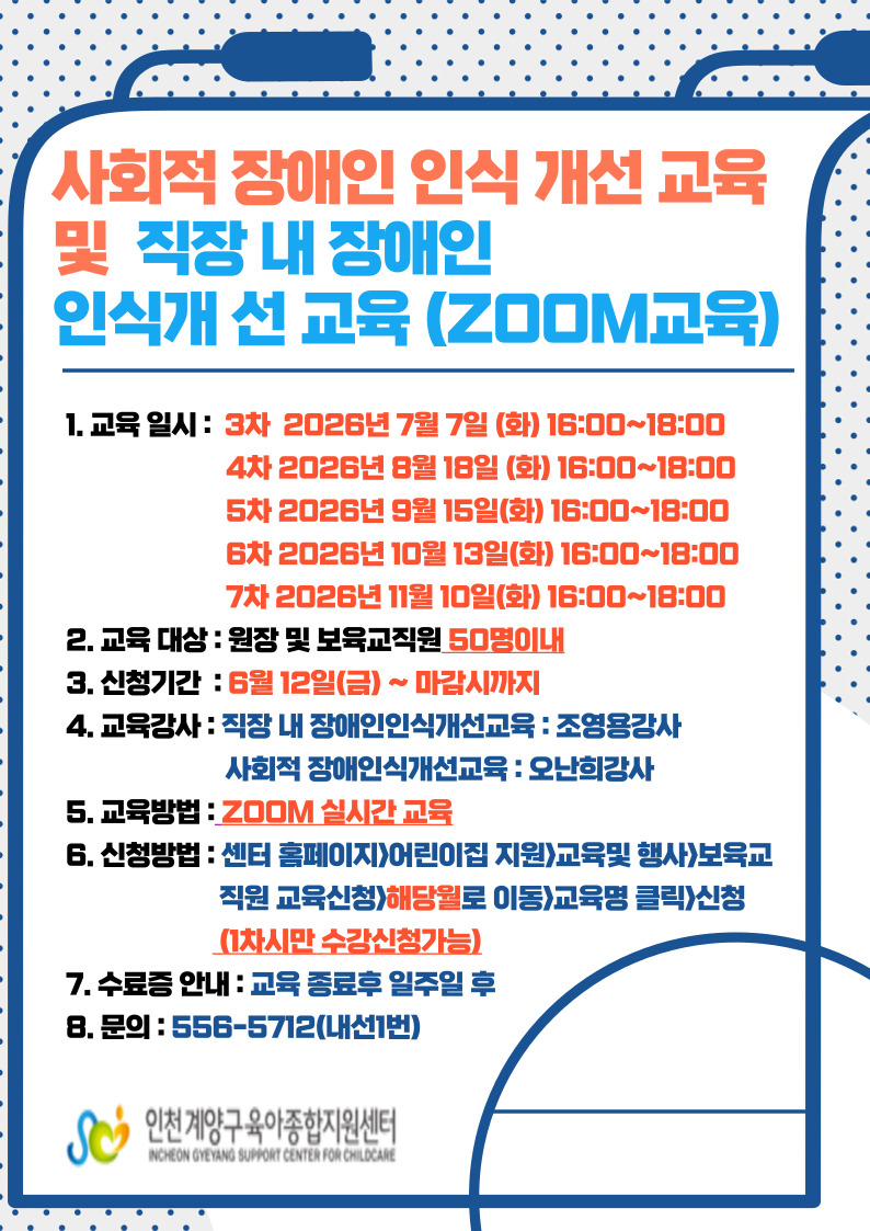 2026년 사회적 장애인식 개선교육 & 직장 내 장애인인식 개선교육4차(ZOOM)