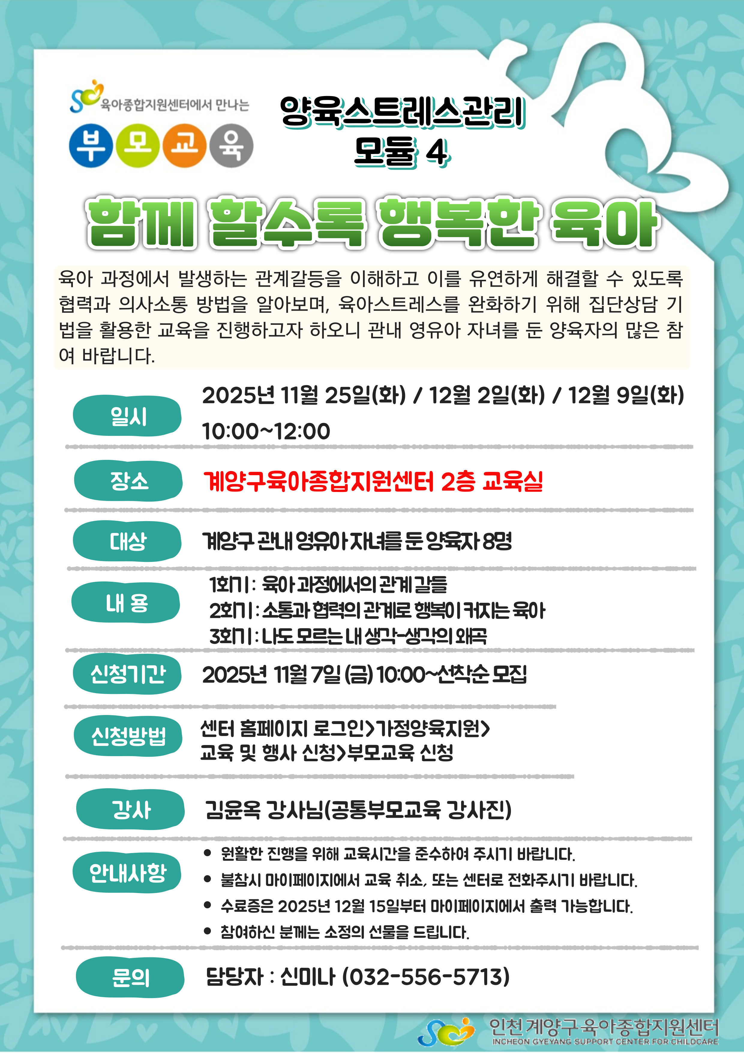| 장소 | 센터 교육실 (계양구 봉오대로 510, 2층) | ||