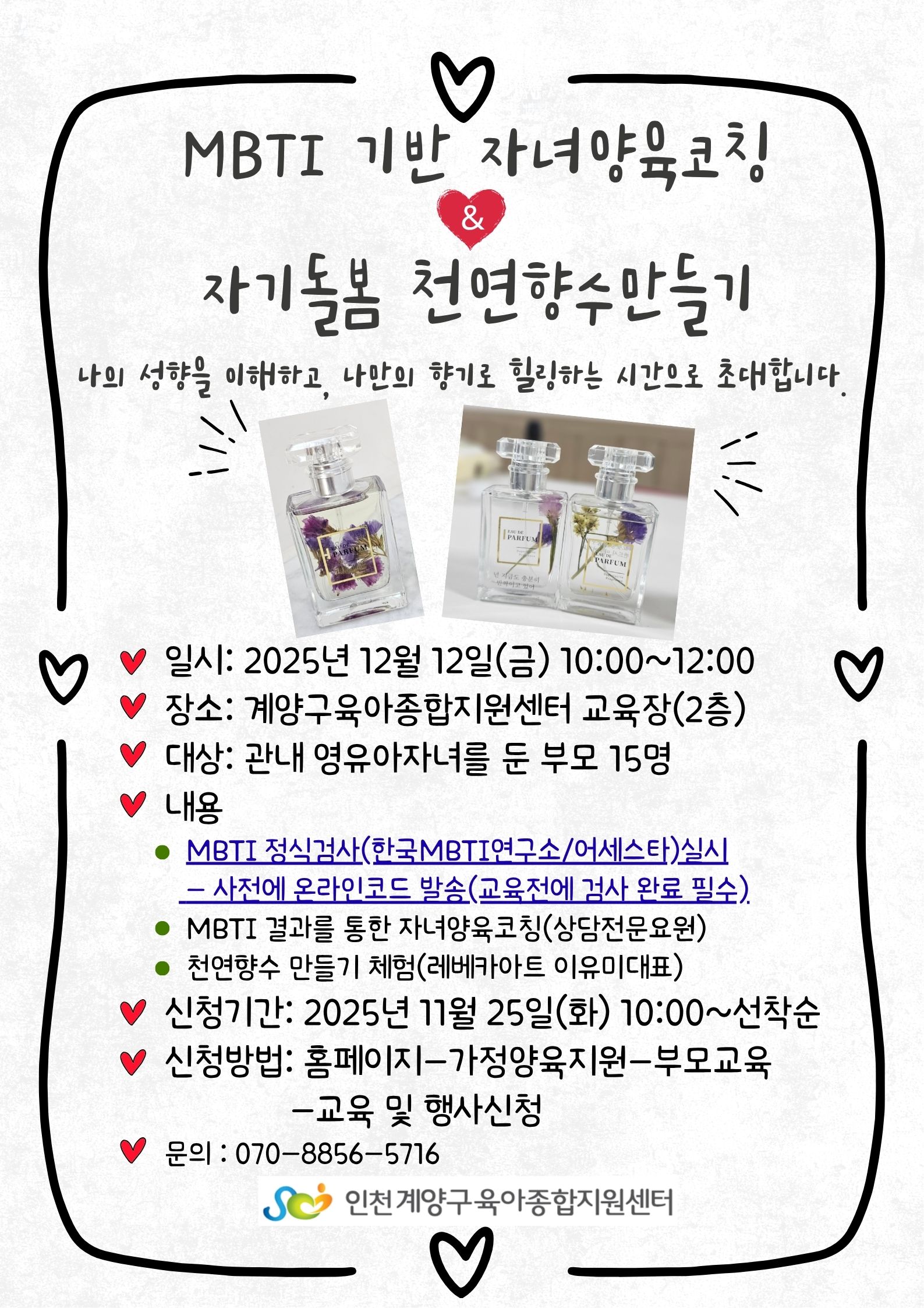 MBTI기반 자녀양육코칭 & 자기돌봄 천연향수만들기